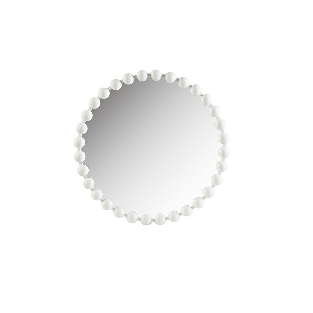 Reimagine your space with our Madison Park Signature Marlowe Beaded Round Wall Mirror. This round mirror features a stylized spherical iron frame finished with matte white foil, creating a bold and glamorous allure. The keyhole hook fixture on the back of the mirror allows for effortless hanging on your wall. Measuring 27x27" easily incorporate this mirror into any small space, bedroom, or entryway - for the perfect combination of modern glam and flair. Wipe clean with damp cloth and handle with care.