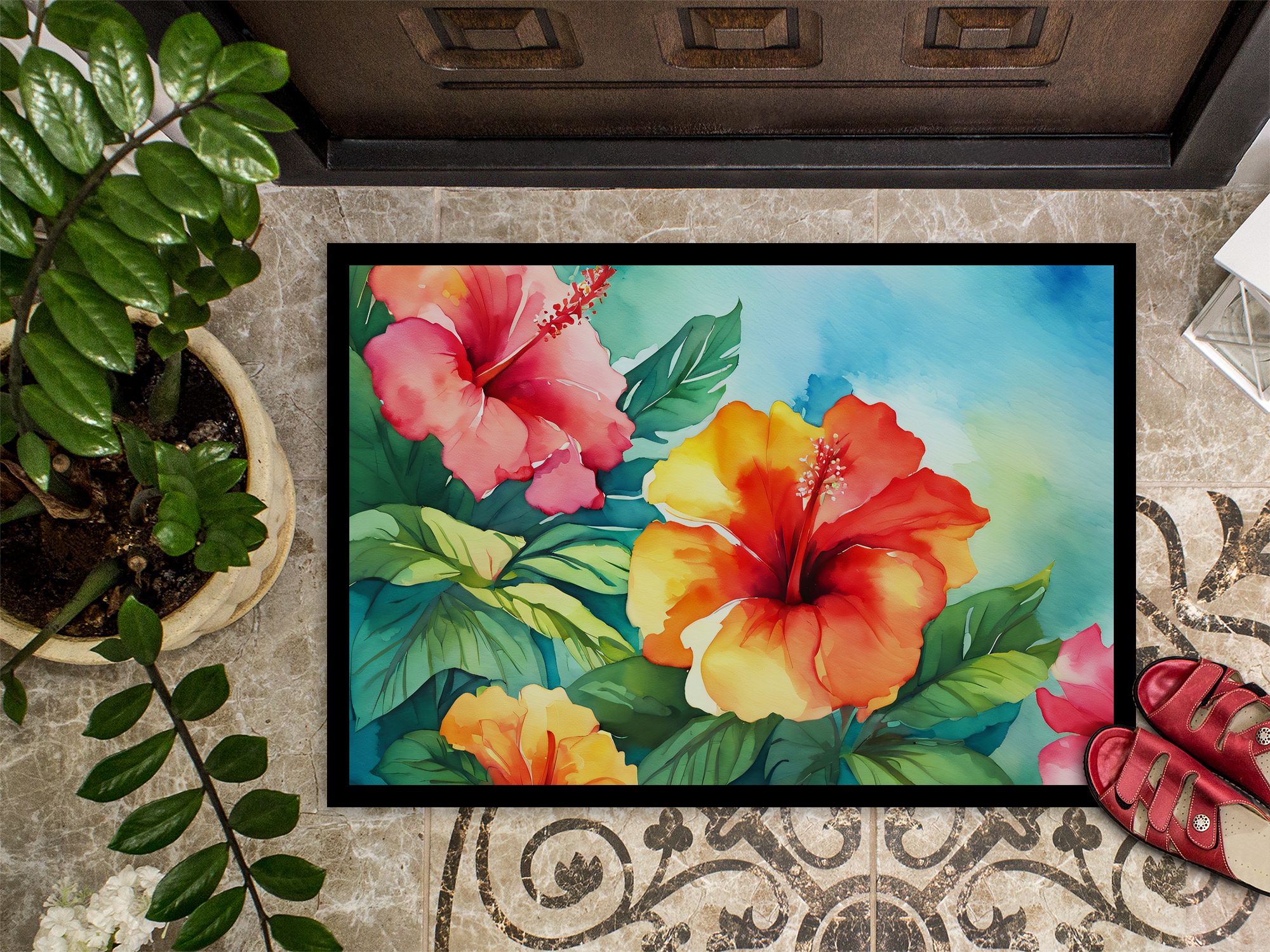 NEW Hawaii Hawaiian Hibiscus in Watercolor Doormat Front Door Mat Indoor Outdoor Rugs for Entryway, Non Slip Washable Low Pile, 18H X 27W NEW Hawaii Hawaiian Hibiscus in Watercolor Doormat Front Door Mat Indoor Outdoor Rugs for Entryway, Non Slip Washable Low Pile, 18H X 27W NEW Hawaii Hawaiian Hibiscus in Watercolor Doormat Front Door Mat Indoor Outdoor Rugs for Entryway, Non Slip Washable Low Pile, 18H X 27W