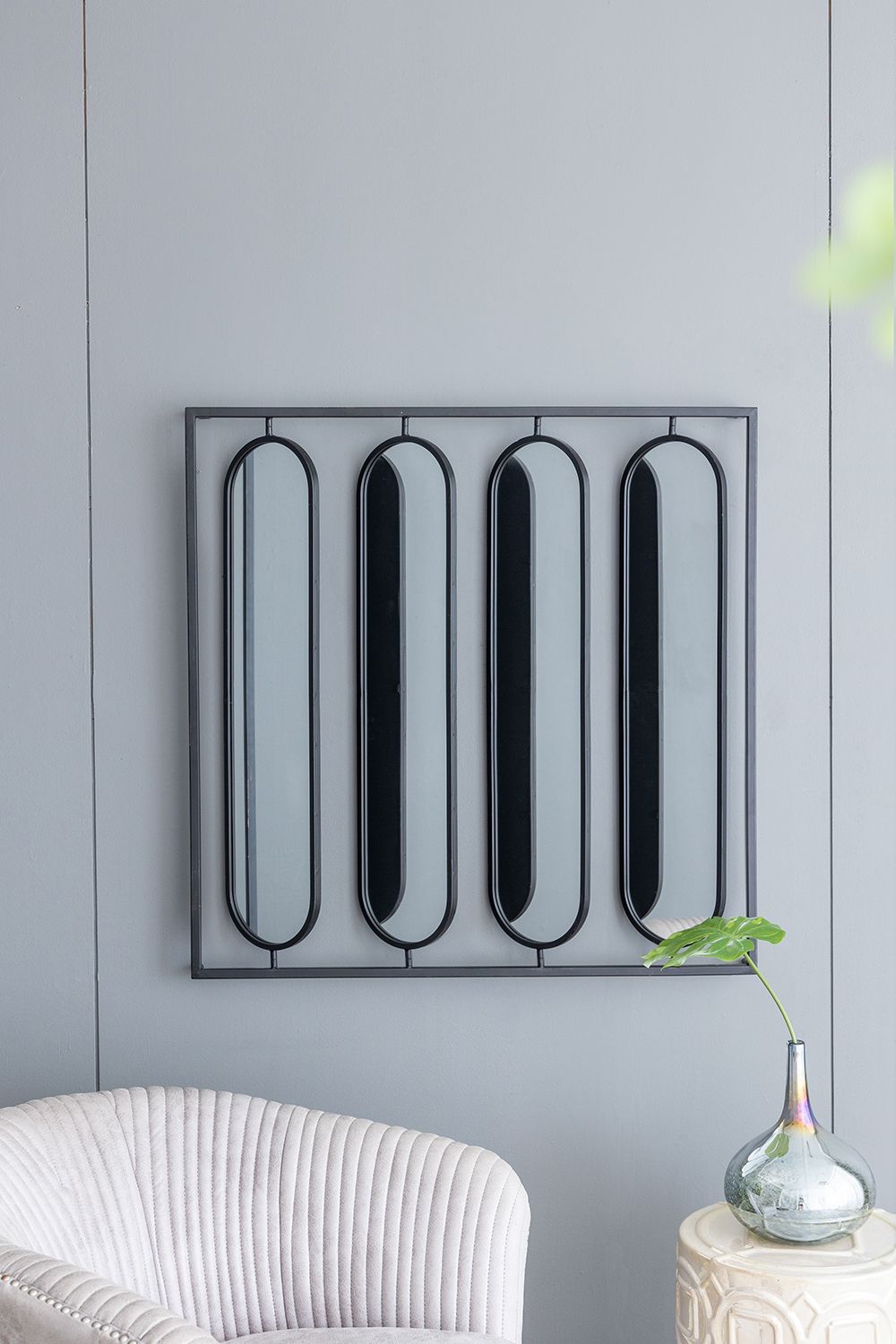 Home > 36" x 36" Large Four Oval Wall Mirror with Black Square Frame, Home Decor for Living Room, Bedroom, Entryway, Office
