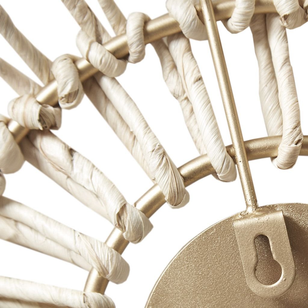 Accent your home decor with the natural boho touch of our Madison Park Ella Round Natural Fiber and Mirror 3-piece Wall Decor Set. This 3 piece wall decor set features round iron frames wrapped in natural corn husks to create a unique and fresh look. Each wall decor comes in a different size with a mirror center and a keyhole hook fixture to make them easy to hang. Display this modern boho wall decor together or separately in your living room or kitchen to give your home a one-of-a-kind stylish update.