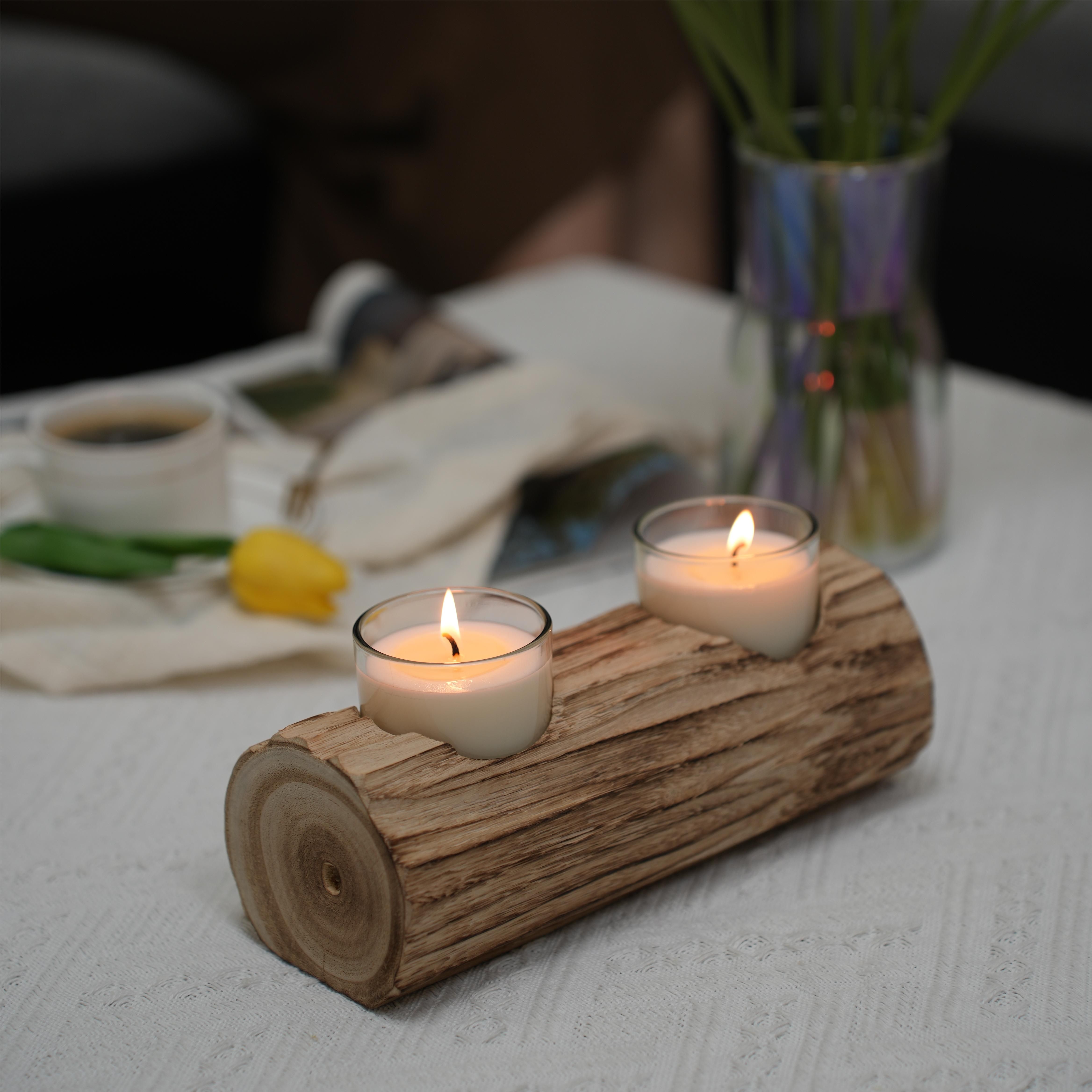 8.66'' L Brown Dual-Compartment Wooden Candle Holder