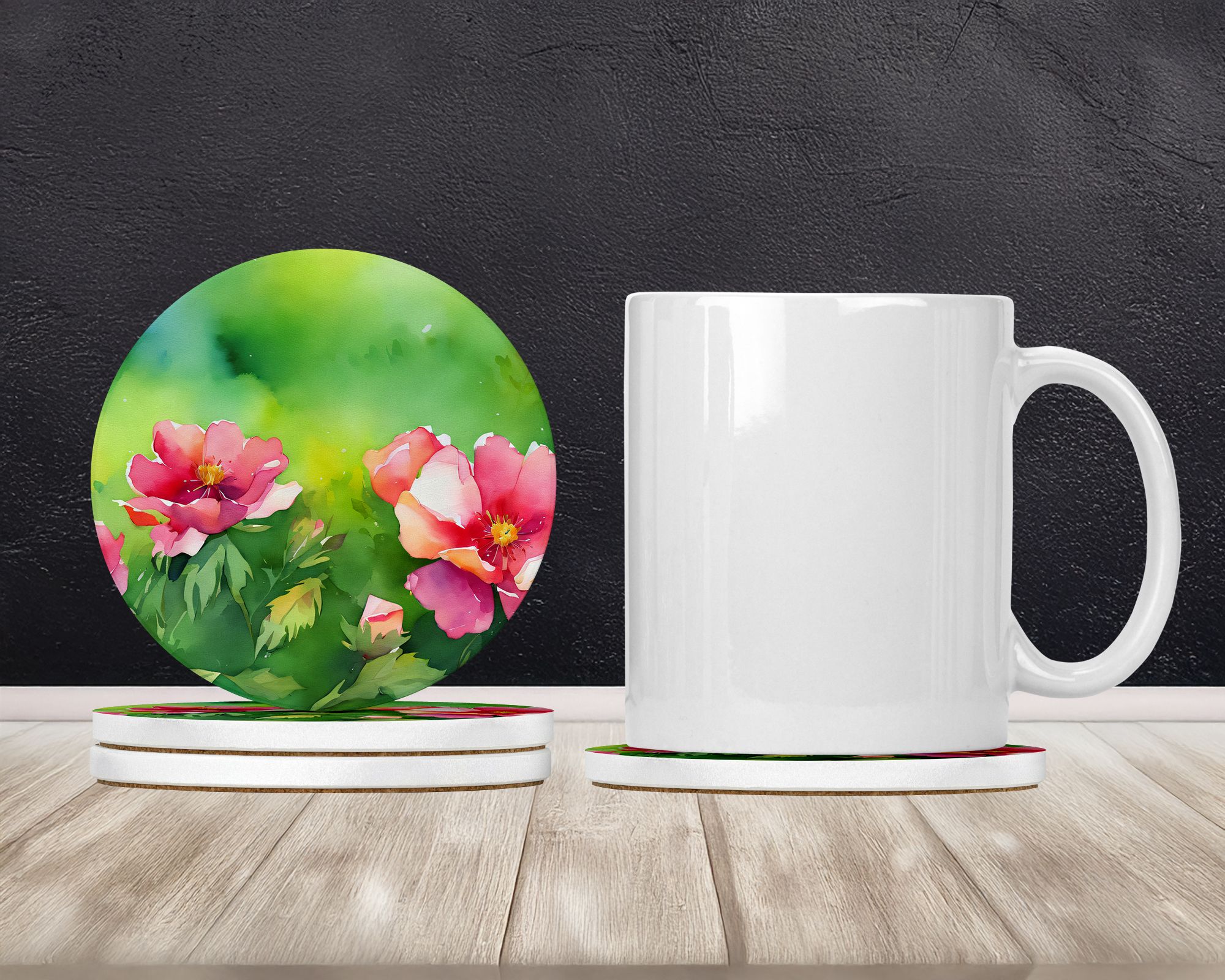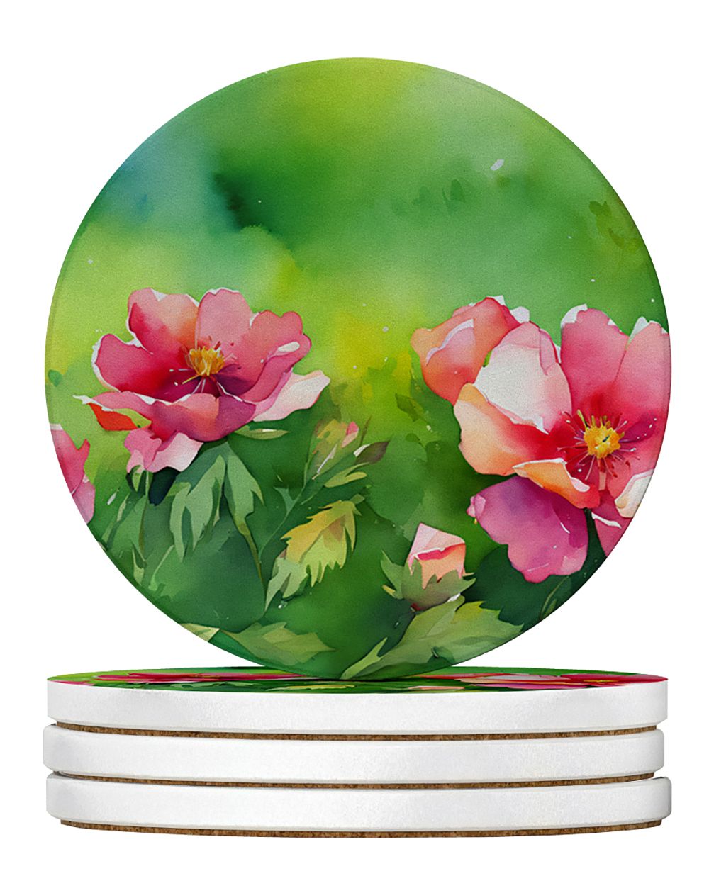 Iowa Wild Prairie Roses in Watercolor Large Sandstone Coasters Pack of 4 Absorbent Round Coasters Decor Gifts for Men or Women, 4 in, Multicolor