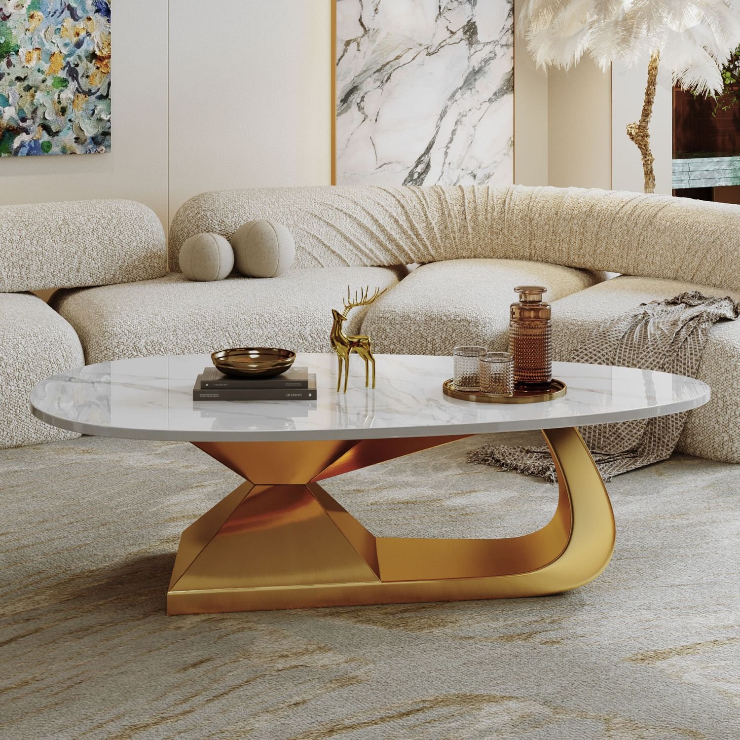 Modern Sintered Stone Tabletop Coffee TableUpgrade your living room with our sleek Modern Faux MarbleTabletop Coffee Table, featuring a chic stainless steel base. This table blends stylish design with lasting durability, perfect for any modern home. The sturdy sintered stone top resists scratches, heat, and stains, staying flawless over time. The stainless steel base offers solid support and a polished look that fits any decor. Ideal for entertaining or relaxing, this coffee table is both practical and eye-catching.