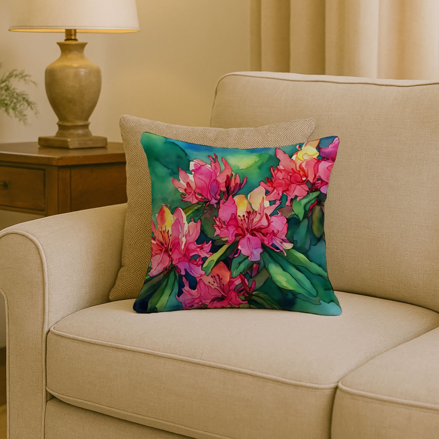 West Virginia Rhododendrons in Watercolor Throw Pillow Machine Washable, Indoor Outdoor Decorative Pillow for Couch, Bed or Patio, 18Hx18W
