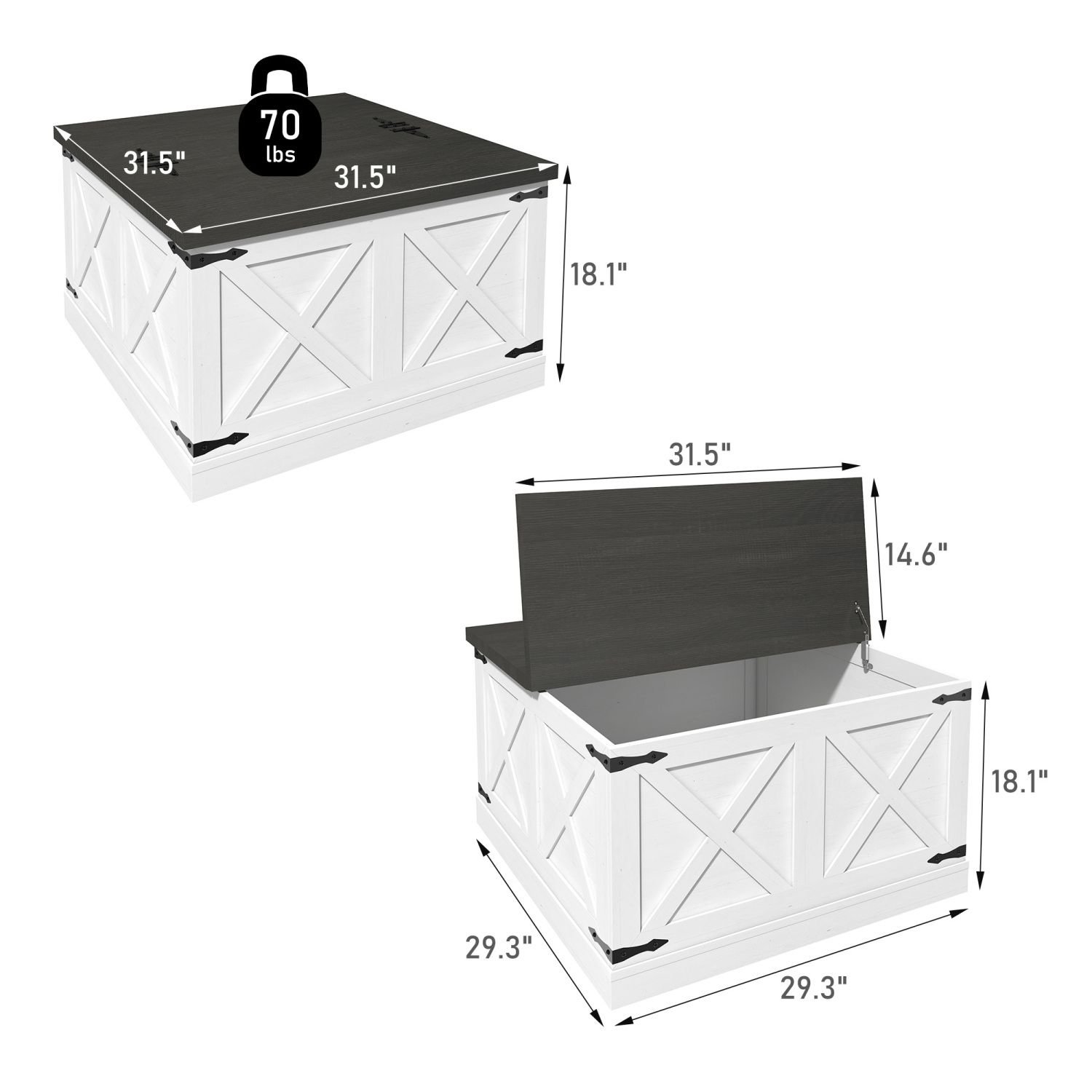 Large Hidden Storage: Lift-up lids reveal spacious compartments for blankets, games, toys. Maximizes living space & tidiness (31.5"x31.5"x18").