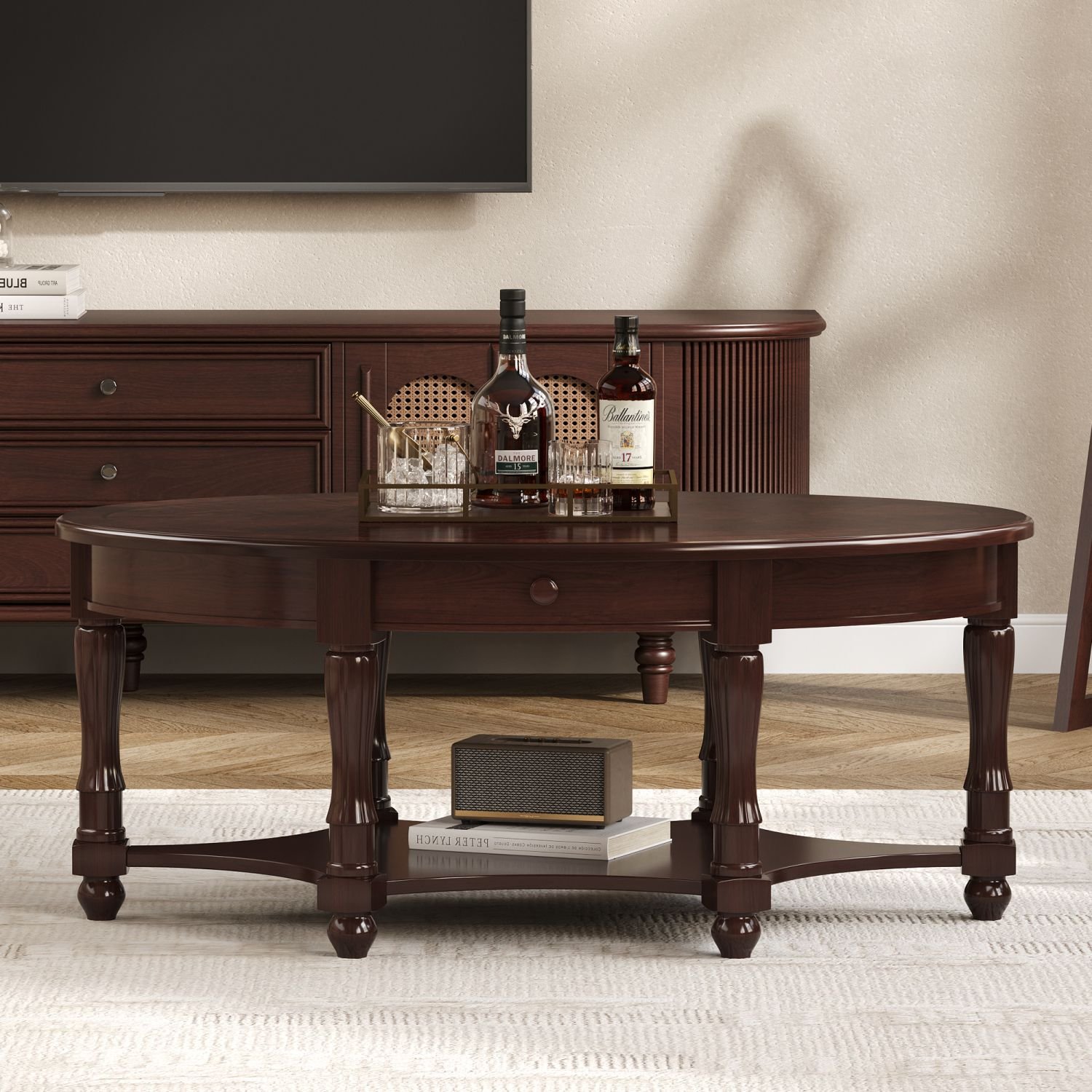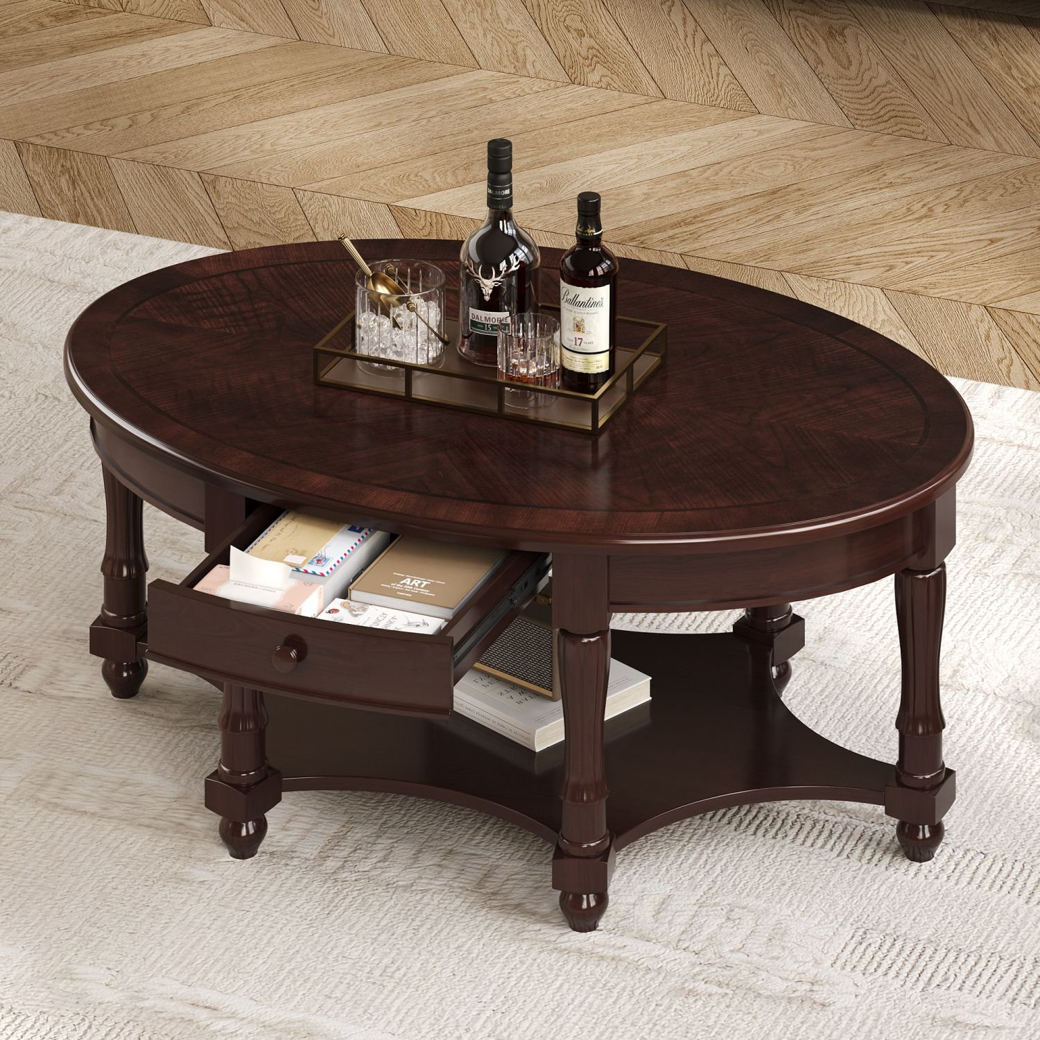 Vintage Oval Coffee Table with Drawer and Storage Shelf, Antique Cocktail Table in 45", French Country Accent Table for Living Room,Walnut Vintage Oval Coffee Table with Drawer and Storage Shelf, Antique Cocktail Table in 45", French Country Accent Table for Living Room,Walnut Vintage Oval Coffee Table with Drawer and Storage Shelf, Antique Cocktail Table in 45", French Country Accent Table for Living Room,Walnut