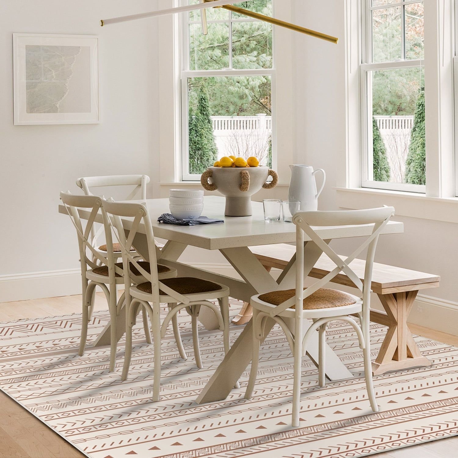 • ��[PERFECT FOR HOME DECOR] This Boho Area Rug has a neutral color and patterned with simple geometric lines.This contemporary designed rug blends perfectly with your home, suitable for the living room, bedroom, dining room, laundry room, entryway, kids' room, playroom, kitchen and office.